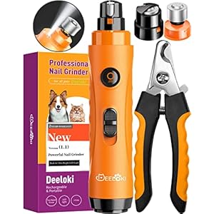 DEELOKI Dog Nail Grinder with LED Light Upgraded 2 Speeds Painless Pet Dog Nail Trimmers and Clipper Super Quiet Best Cat Dog Nail Clipper Kit for Large Small Dogs Pets Cats Breed Paws Quick Grooming