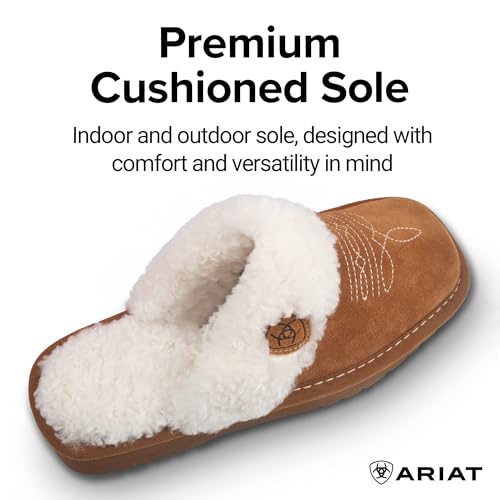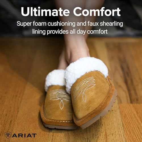 ARIAT Women’s Jackie Square Toe Warm Soft Genuine Suede Leather Indoor Outdoor Slippers with Plush Collar