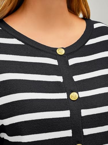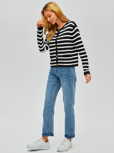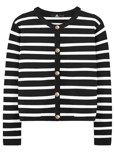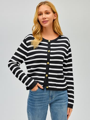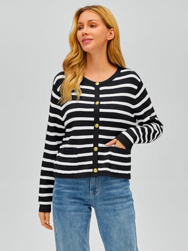 AUTOMET Womens Cardigans Striped Sweaters 2024 Fall Fashion Outfits Clothes Open Front Button Down Knit with Pockets