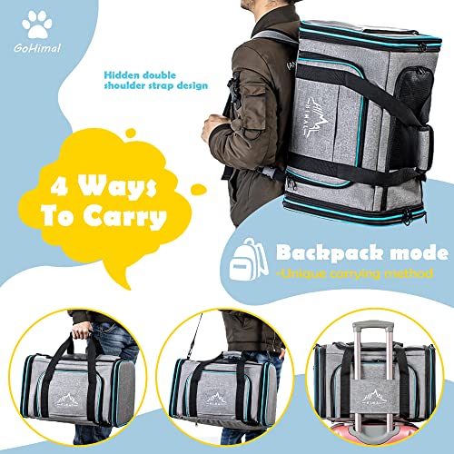 GoHimal Pet Carrier Airline Approved Pet Carrier,4 Sides Expandable Cat Carrier Bag Large Soft Sided Pet Travel Carrier Dog Carrier Backpack with Removable Fleece Pad (Blue)