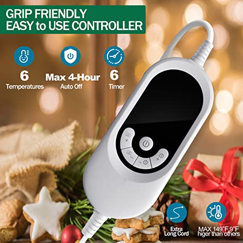 【6 Heat Level & 4-Hour Auto Off】 – Optimized 6 heat level range and max 149℉, feel heat in 20 seconds, warm up in 5 mins, and reach the max temperature in 10 mins. 6 temperatures pickable, and max 4-hour auto shut off setting for safety in case you fall asleep or forget to turn it off. (6 timer available from 30 min to 4 Hours)