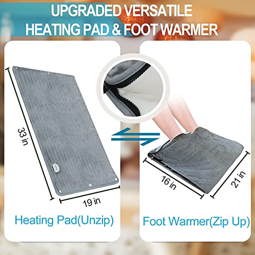 Heating Pad & Foot Warmer 2 in 1, Extra Large Soft Electric Heating Pad XXL(21×33″) Heating Pad for Back Pain Relief Period Cramps, Max 4-Hour Auto Off/6 Heat Level/6 Timer/Machine Washable