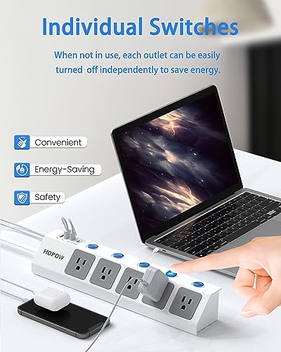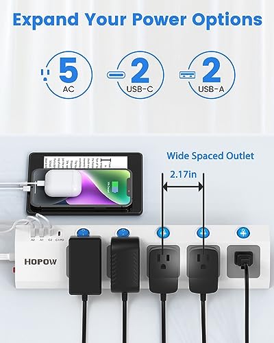 [Handles All Your Needs]: Equipped with 5 AC outlets and 4 USB (2 USB-C) ports, this long power strip turns 1 outlet into 9, allowing you to power 9 devices concurrently to save more time.