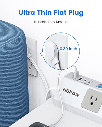 [Space-Saving Flat Plug]: With only a 0.39-inch ultra-thin plug, which is much slimmer than traditional plugs, so it’s easier to get entry to any wall socket and hide behind the sofa. And a 45° right-angle design is not going to block the bottom receptacle of your duplex wall outlet. No waste for each inch of space in your house.