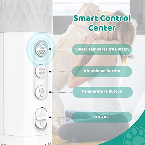 SMART CONTROL: IFurffy dog dryers for grooming has 3 airflow and 3 temperature modes. Also with smart temperature keep an eye on button, in smart mode every 3s will switch between cold and warm air, so that pets in a comfortable temperature to quickly dry the hair. IFurffy dog grooming dryer motor maximum power up to 900W, maximum airflow 50m / s, temperature range:100 ° F-185 ° F, even as equipped with a 7.9ft power cord.