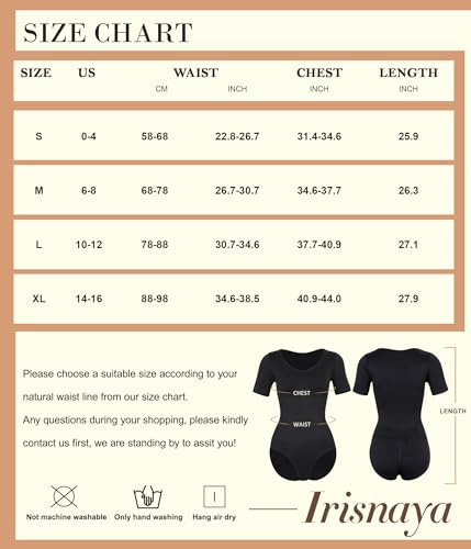Irisnaya Seamless Bodysuit for Women Tummy Control Shapewear Round Neck Body Shaper Short Sleeve Jumpsuit Top Going Out Shirt